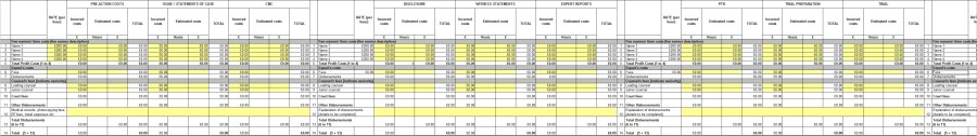 The Precedent H in its current format mixes both chronological steps (Pre-action, pleadings, directions etc.) and non-chronological aspects (expert evidence, disclosure, negotiations etc.) This allows a certain amount of discretion as to which phase to allocate work to e.g. work associated with updating a schedule of loss/counter-schedule could feasibly go in ‘issue/statement of case’, or ‘preparation for trial’. Without consistency between the parties a like for like comparison is not possible, which is surely one of the intentions of the new regime.